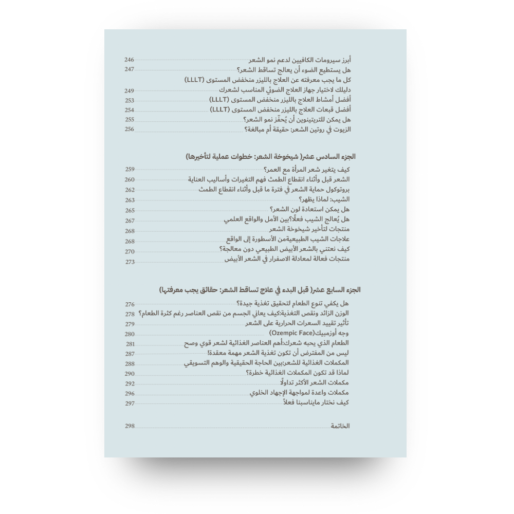 فَك شِفرة الفروة : دليلك للعناية بفروة صحية $199.00 صحتك في كوب: دليلك لابتكار مشروبك الأخضر المثالي $40.00 مالا يخبرك به الخبراء : الدليل الشامل للعناية بالشعر $135.00 Sold out التقويم السنوي لمواعيد قص الشعر ٢٠٢٥ $55.00 Sold out التقويم السنوي لمواعيد قص الشعر ٢٠٢٤ $55.00 Sold out التقويم السنوي لمواعيد قص الشعر ٢٠٢٣ $55.00 Sold out